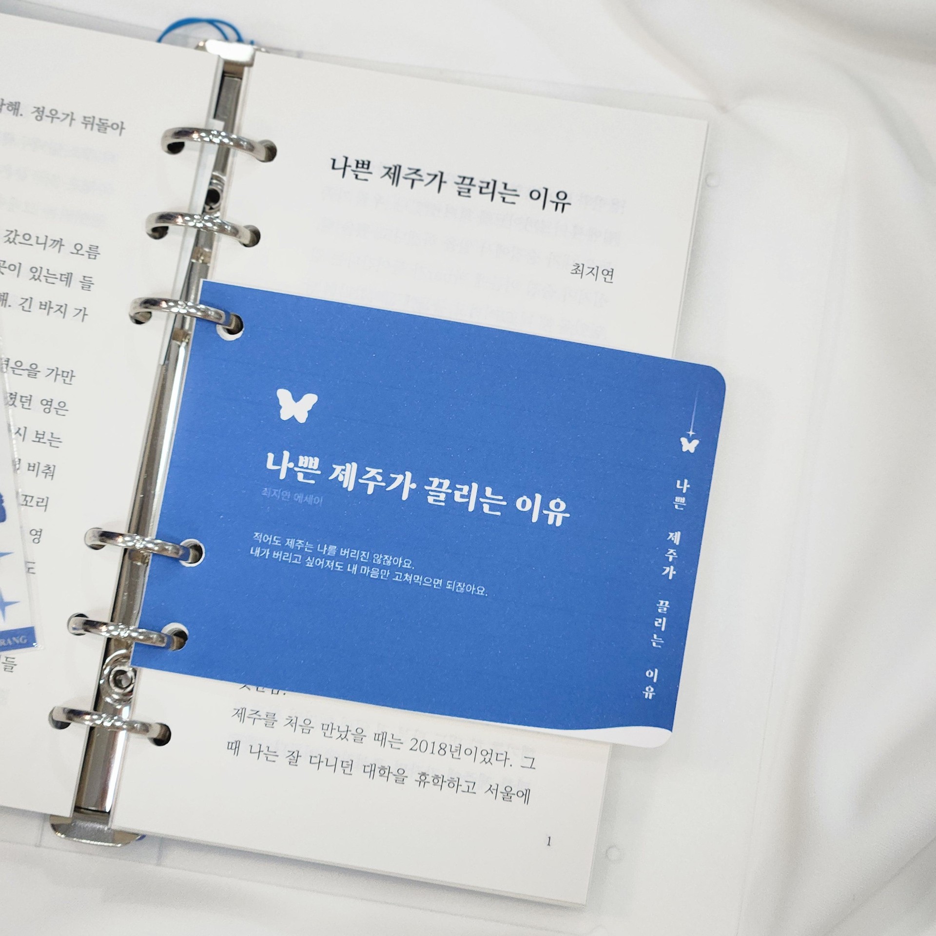 • 제본없이 인쇄한 작품을 6공 다이어리에 엮어서 읽는 책이다.